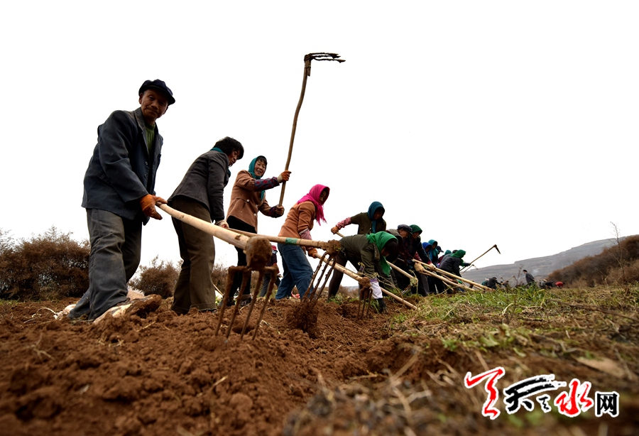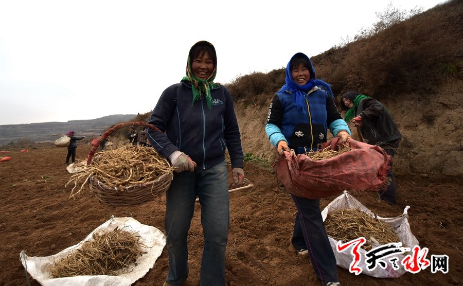 天天天水网讯(记者何永德)11月21日,时值初冬,麦积区渭北高寒山区的五龙乡中药种植基地采收党参的热闹场面却与初冬的寒冷形成显明的对比,近百村民在这里一字排开正在采收党参。