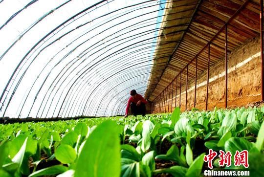 图为敦煌市月牙泉镇兰州村农民在温室中务作蔬菜。 张晓亮 摄