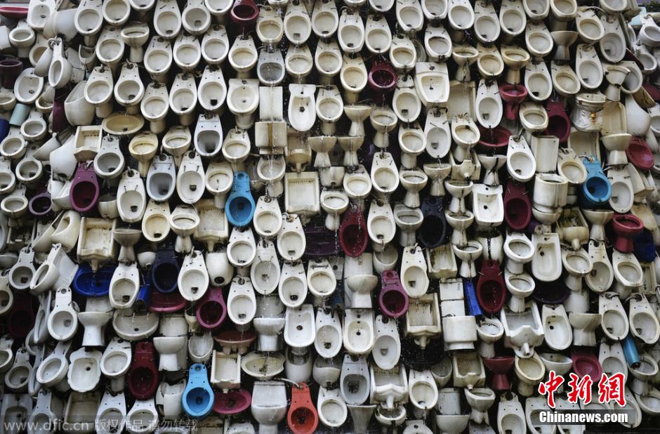北京时间11月26日消息,广东佛山,“马桶瀑布”在09年首届中国(佛山)陶瓷节开幕时亮相佛山石湾公园,上万只废旧马桶、洁具,砌成一面长100多米、高5米的艺术墙。在当时,这组艺术装置引起不小的口水战,市民们的反应也褒贬不一。时隔五年,马桶瀑布在市民和外地游客眼中,早习以为常,人们每天从马桶前经过,显得那么淡定自然,不再用那异样眼光来看待。马桶瀑布也由此成为公园里的一道靓丽风景。