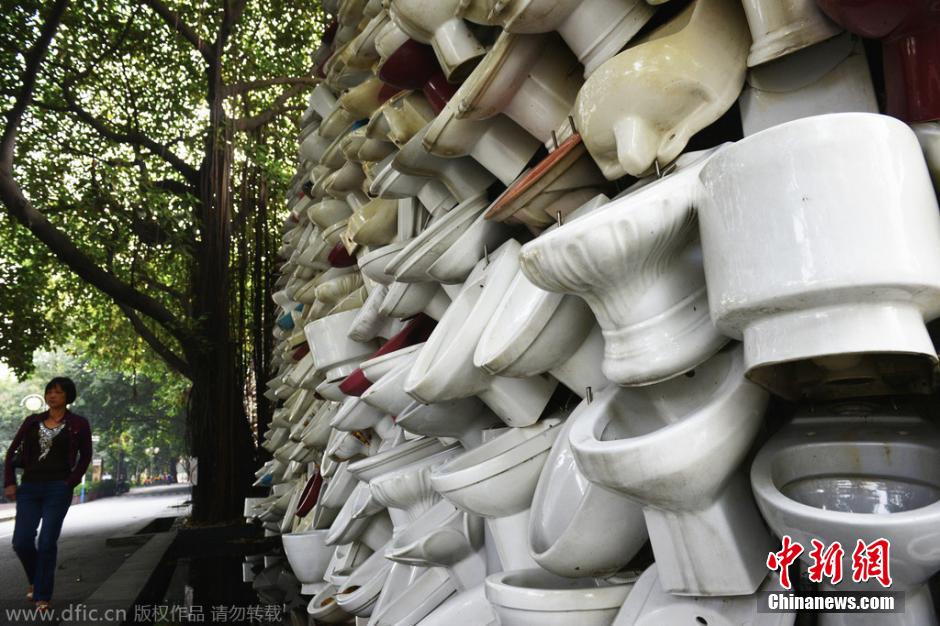 万只废旧洁具砌成“马桶瀑布” 市民习以为常
