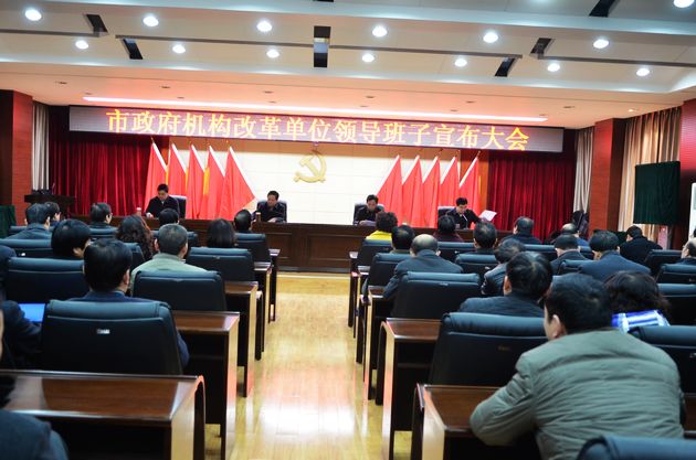 按照精简、统一、效能的原则,结合实际,我市将调整优化组织结构,将市卫生局、市人口和计划生育委员会的机构和职责整合,组建市卫生和计划生育委员会,不再保留市卫生局、市人口和计划生育委员会。将市文化广播影视新闻出版局、市旅游局的机构和职责整合,组建市文化和旅游局,不再保留市文化广播影视新闻出版局、市旅游局。将市民族事务委员会、市宗教事务局的机构和职责整合,组建市民族宗教事务委员会,不再保留市民族事务委员会、市宗教事务局。将市食品药品监督管理局的职责、市质量技术监督局的生产环节食品安全监管职责、市工商行政管理局的流通环节食品安全监管职责、市卫生局的食品安全监管等职责整合,重新组建市食品药品监督管理局。将市工商行政管理局由省工商行政管理局垂直管理调整为市政府工作部门。将市质量技术监督局由省质量技术监督局垂直管理调整为市政府工作部门。将市政府金融工作办公室由市政府办公室挂牌机构调整为市政府工作部门。改革后,市政府设置工作部门为34个、直属事业单位9个,派出机构4个。