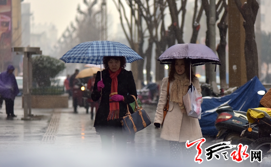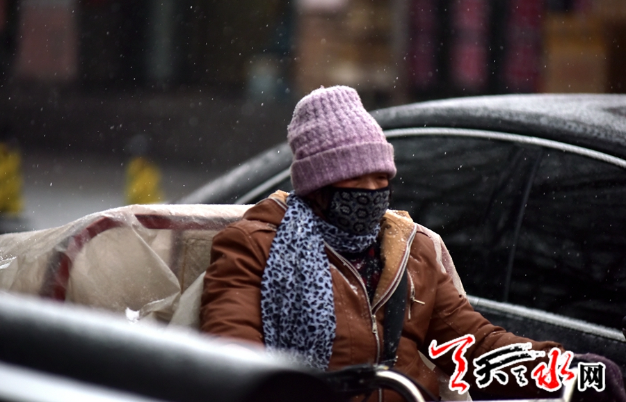 天天天水网讯(记者何永德)12月9日凌晨,受冷空气影响,天水市迎来“大雪”后首场有效降雪,把入冬以来以晴天模式为主的天气主导地位一下改变为降温降雪模式。大街上人们的着装一下进入了冬天的情景,棉衣、围巾等同时上阵。此次降雪不但迎来了真正意义上的冬天,而且有效地缓解了入冬以来的干燥气候。