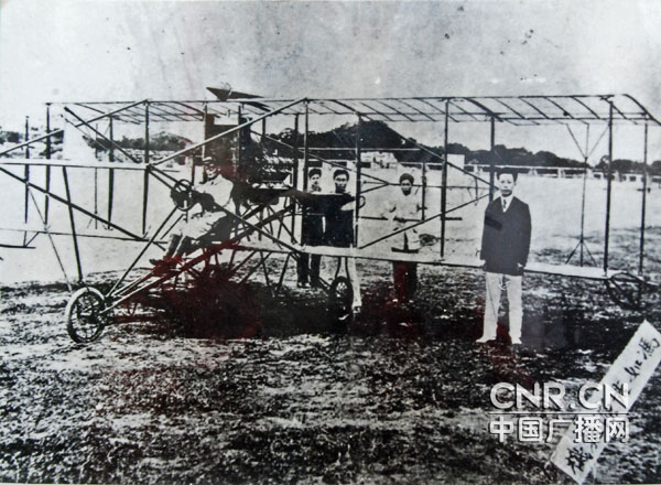 南苑航空学院教育长蒋逵在接收法国飞机进行试1913年春,在南苑创办了中国第一所正规航空学校。图为南苑航空学校教育长蒋逵在接收法国飞机进行试飞的情形