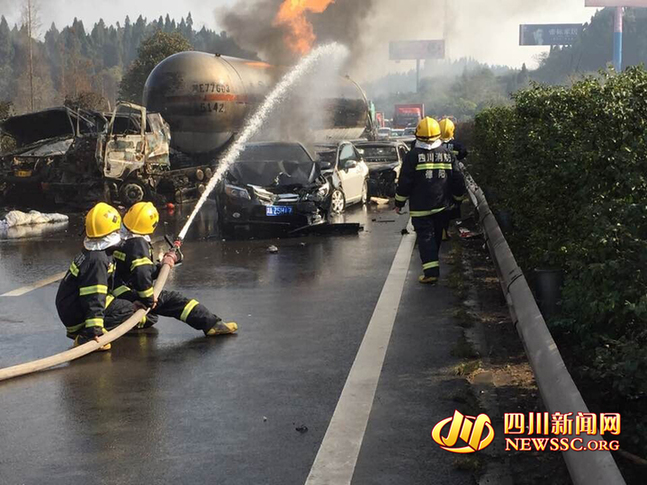 其中第四起事故中,达州籍驾驶人赵某(男,准驾车型:A2)驾驶运载石油液化气的陕E77603重型半挂牵引车,牵引陕E5142挂重型罐式半挂车在事故撞击后,发生燃烧,消防部门正在全力灭火抢险。待隐患排除后,及时恢复交通。