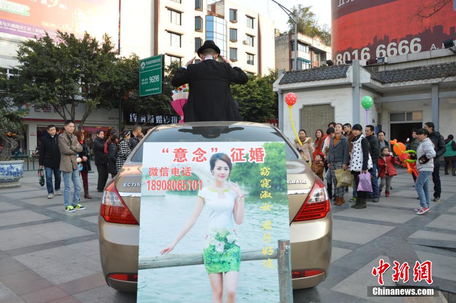 成都剩男街头用“意念”征婚引围观