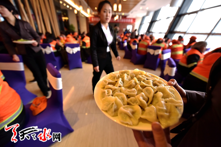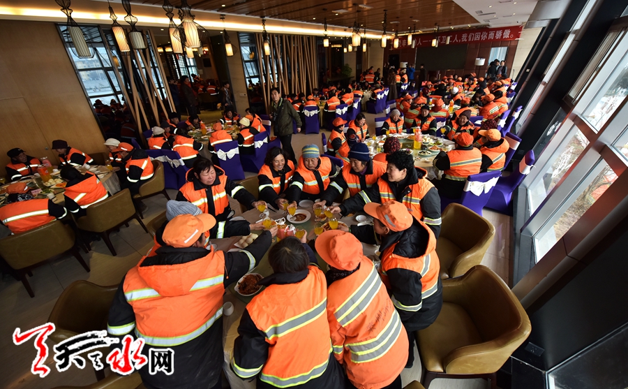 天天天水网讯(记者何永德)12月22日是农历冬至节气,当天中午,天水羲圣园餐饮管理有限公司和三江渔府火锅城共同发起首次让环卫工人免费用大餐吃火锅活动,让常年披星戴月、风来雨往中辛苦工作的环卫工人感受到了的社会关怀。