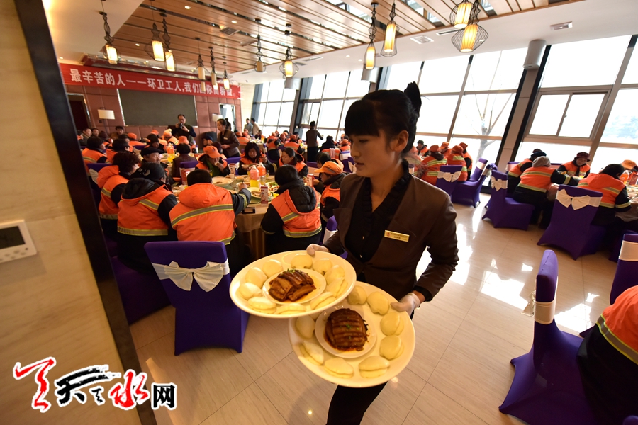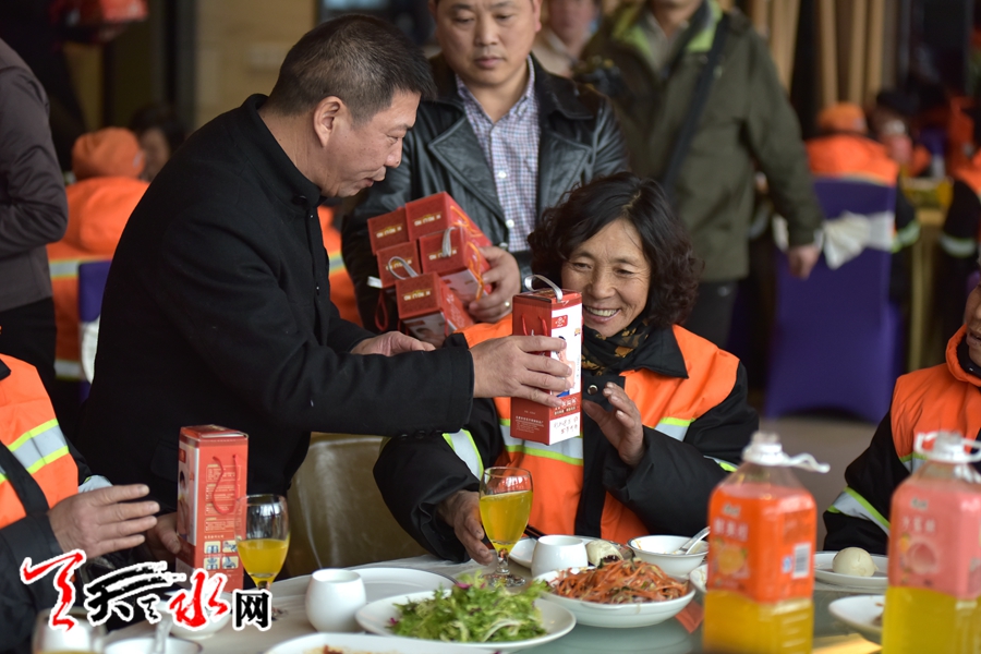 天水环卫工人首次集体免费用大餐