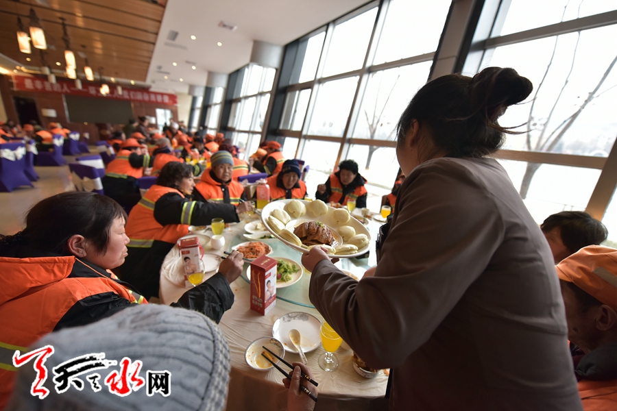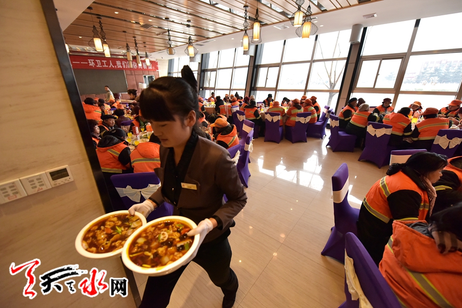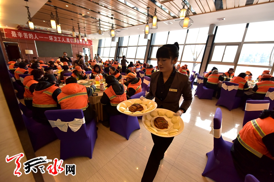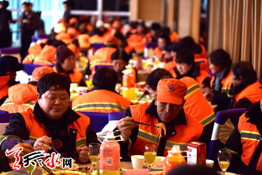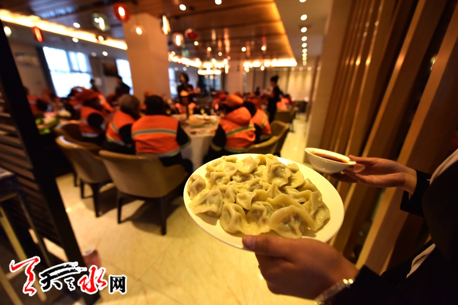 天水环卫工人首次集体免费用大餐