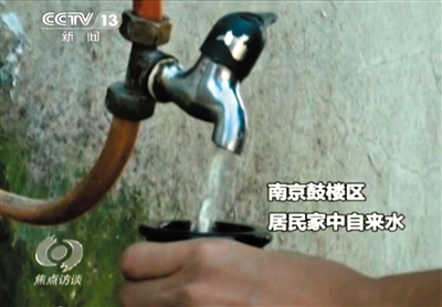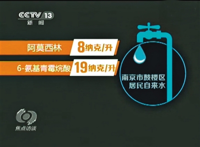 央视曝出南京鼓楼区抽检自来水的抗生素含量。 央视截图
