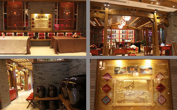 此前有媒体爆出,刘老根会馆的菜式以东北菜和粤菜为主,菜价也属于中高档,如八大锅中的笨鹅炖土豆售价129元,肥牛炒猴子腿66元,其中“八大锅”为会馆推荐的特色菜品。此外,还有“王小蒙豆腐”、“首长保健菜”、“梅花鹿鞭”等菜式。一楼大厅装饰细节