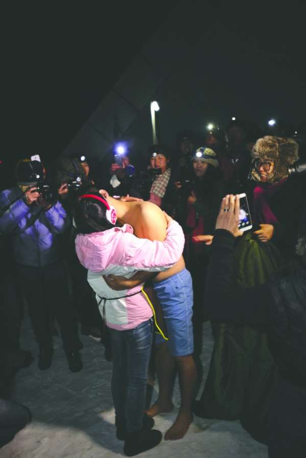 前晚,在海拔3600米的海螺沟风景区的冰天雪地中,气温低至-9℃。26岁的成都小伙儿王浩儒光着脚丫,只穿着短裤,肚皮上写着“嫁给我”,向女友许评莲求婚成功。王浩儒说,他的父亲和许评莲的父亲关系很好,两家是世交,他很小的时候就认识许评莲。“小时候我就对她有好感,小学五年级还给她写过情书,不过由于当时我俩年龄都太小,我被她拒绝了。”王浩儒说,一年多前,两人开始正式交往,确立恋爱关系。