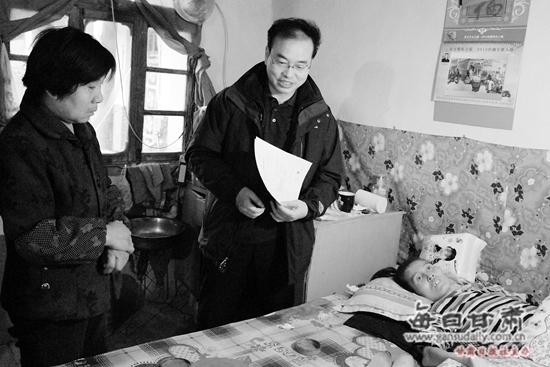 省红十字会捐献办主任贾伍亮慰问李翠及家人。本报记者曹勇摄