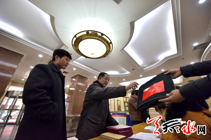 天天天水网讯(记者何永德)1月13日上午,参加政协第六届天水市委员会第四次会议的委员们饱含热情,怀着百倍的信心,带着全市人民的殷切期望,陆续报到,签取会议相关资料。
