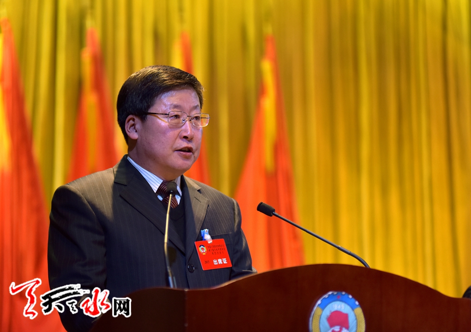 受政协第六届天水市委员会常务委员会的委托,中共天水市委副书记、市政协主席宋尚有向大会作工作报告。