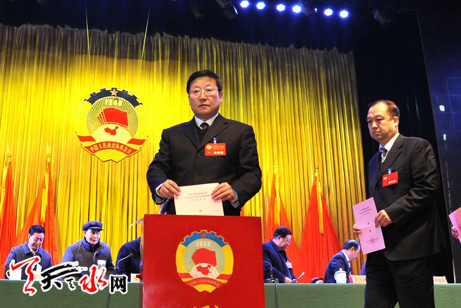 会议以无记名投票的方式,补选王卫国、田溪、刘锋、巩玉保、何宝平、余积栋、李虎生、庞明全、赵新年、焦新德为政协第六届天水市委员会常务委员。