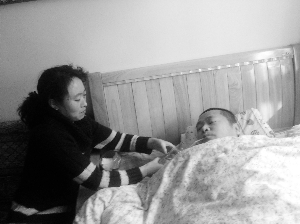 李军花照料丈夫。