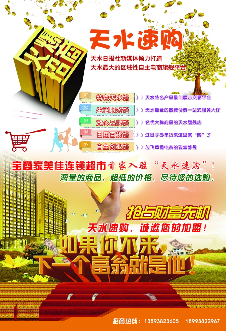 天天天水网讯 由天水日报社新媒体中心倾力打造的区域性自主电商平台——天天天水网“天水速购” 电子商城运营在即,现诚邀合作伙伴,期待您的加盟。