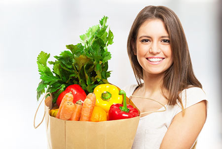 蔬果含的水分多,能量低,还含有丰富的维生素和矿物质,顿顿蔬菜、天天水果,既可以控制能量过多摄入,维护健康体重,又可以使你的肌肤美丽。