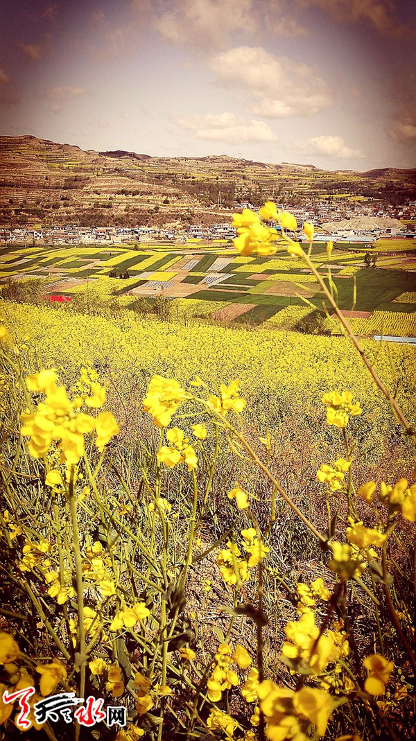 春天,在我们天水这方温婉的小城,也有着一道世外桃园般的田园风光;春光里,一田一田的油菜花,缭乱在天水的原野里,让我们步入如火如荼、万紫千红的妩媚境界。
