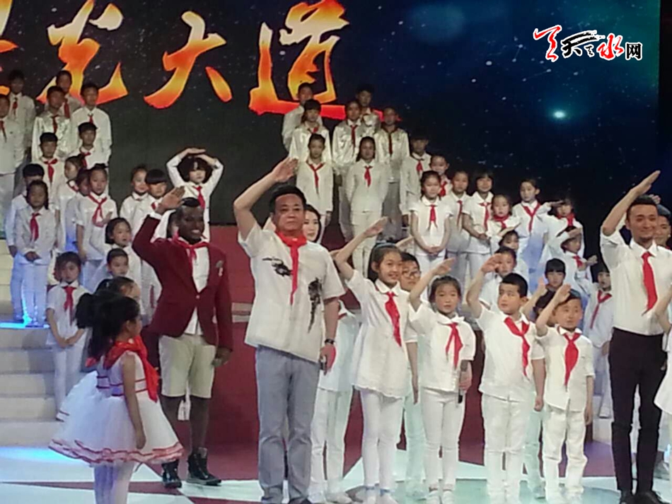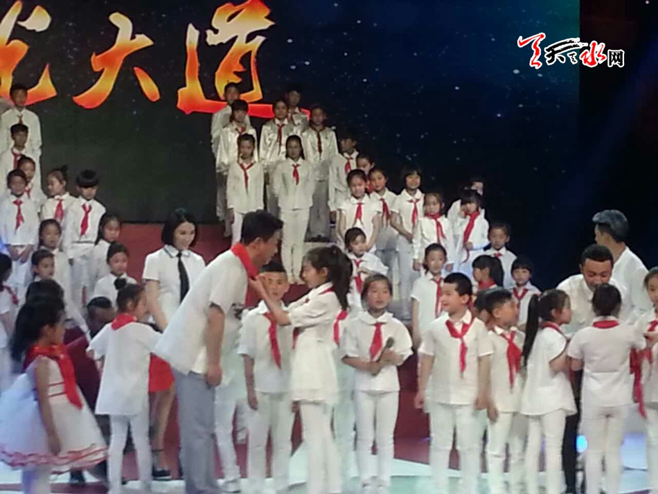 从张丹跟随女儿在北京参加活动时拍摄的视频中,记者看到,在《星光大道》节目录制现场,李雨珊等全国百名优秀少先队员们跟节目主持人朱军、尼格买提、关凌一起,在节目开场时为月赛冠军伴舞。随后,李雨珊作为少先队员的代表,向朱军介绍了自己。当小雨珊说自己来自甘肃天水时,朱军立即向在场的观众介绍说:“天水,是个神奇的地方,诞生了伏羲等等许多伟大的人物。”在节目组的安排下,小雨珊还亲手为朱军戴上了红领巾。