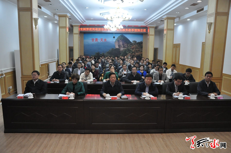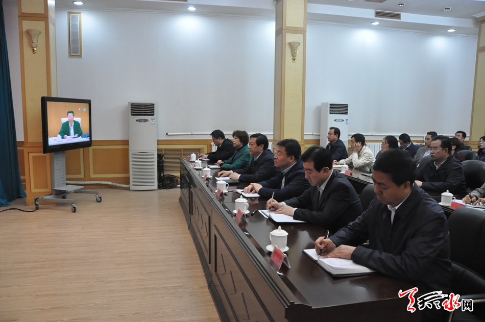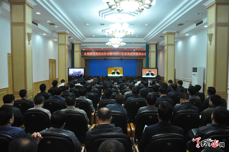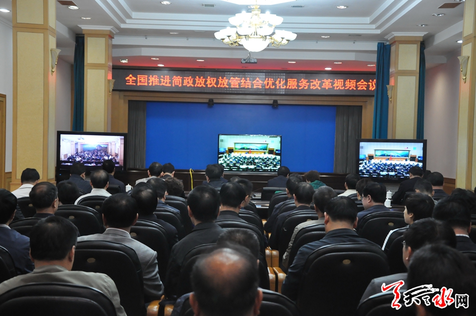 天天天水网9日10时讯 【记者 杨璟】 5月9日上午10时,全国推进简政放权放管结合优化服务改革电视电话会议召开。市委副书记、市长杨维俊,市委常委、副市长李晓东,副市长温利平、霍卫平、许强,市政府秘书长逯克宗在天水分会场收听收看会议。