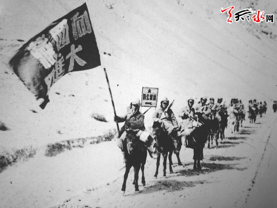 1950年1月,年轻的共和国诞生不久,毛泽东主席在出访苏联的专列上向党中央发去了一封部署解放西藏的绝密电报,根据毛主席的建议,党中央和中央军委决定从西康、云南、青海、新疆四路出兵向西藏进发。新疆军区独立骑兵师由汉、蒙、回、藏、维吾尔、哈萨克、锡伯等七个民族的139名(其中党员35人,团员14人)官兵组成的“进藏先遣连”,在总指挥兼党代表、团保卫股长李狄三,连长曹海林,指导员李子祥,全军特级战斗英雄、副连长彭清云等的率领下,于1950年8月1日从新疆于阗县誓师出发向藏北进军,王震司令员亲自前往送行,并勉励先遣连官兵说:“你们既是先遣队,又是侦察队,同时还是探险队、战斗队和工作队。希望同志们发扬大无畏的革命精神,把胜利的红旗插上西藏高原!”