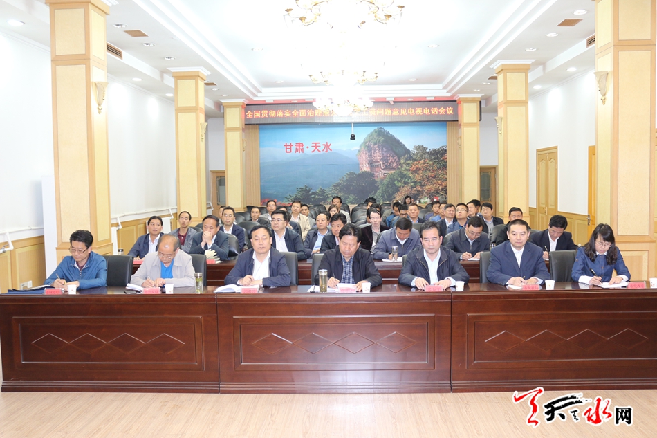 (张明泰以及市直相关部门负责人、各县区政府分管领导在天水分会场收听收看会议)