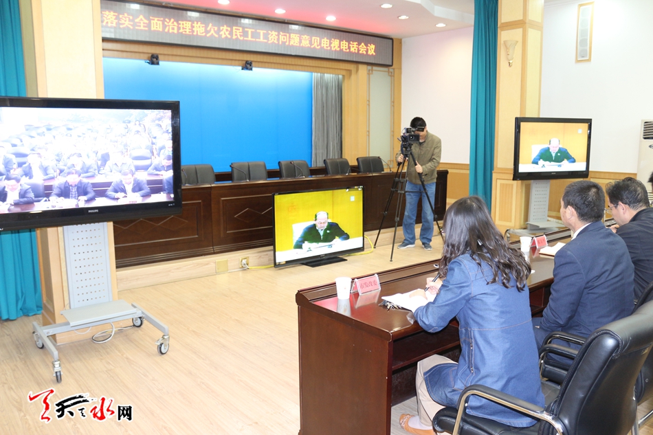 天天天水网13日16日讯 【记者 杨璟】5月13日下午3时,全国贯彻落实全面治理拖欠农民工工资问题意见电视电话会议召开。市委常委、副市长张明泰以及市直相关部门负责人、各县区政府分管领导在天水分会场收听收看会议。