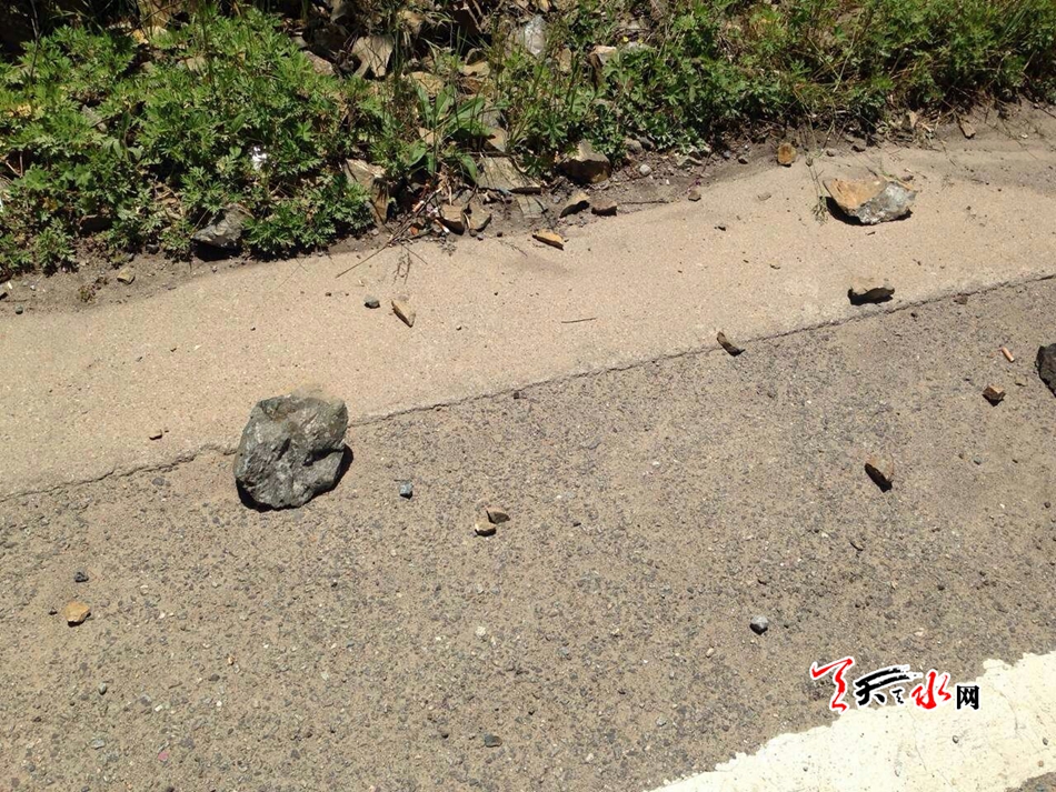 天天天水网5月15日讯(见习记者 王明辉)周末是外出游玩的好时间,雨后初晴的天空是那么的蔚蓝。然而,在通往麦积山风景区的大路上,却时不时有掉落的石块。