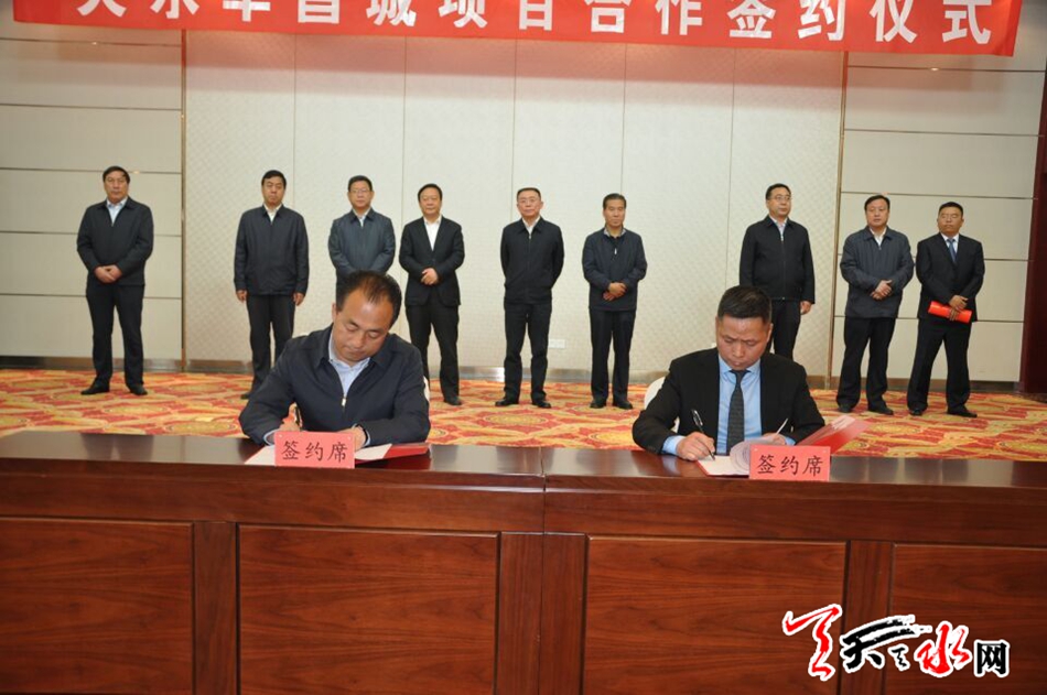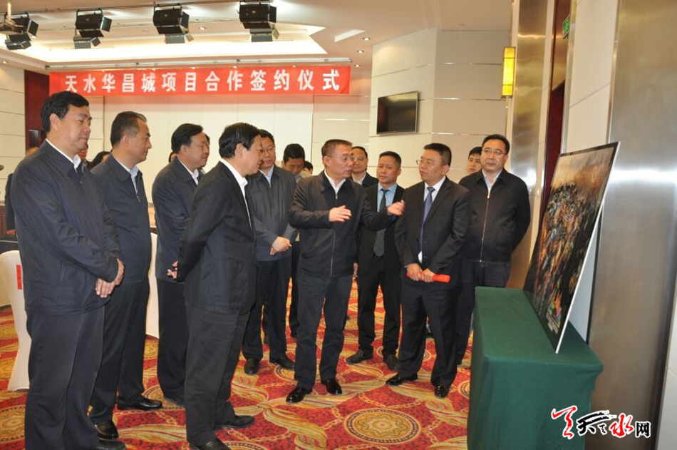(麦积政府负责同志与天水华昌文化旅游开发有限公司进行签约)