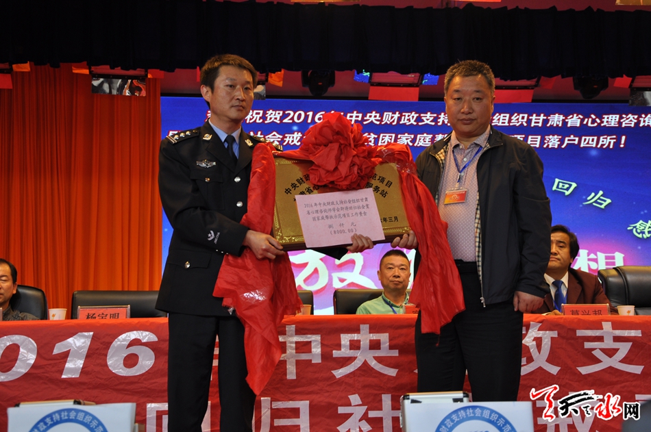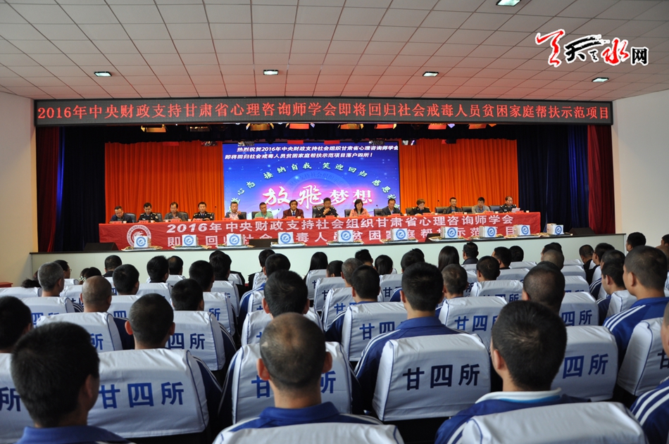 天天天水网17日16时讯 【记者 邵兰霞】5月17日上午, 2016年中央财政支持甘肃省心理咨询师学会即将回归社会戒毒人员贫困家庭帮扶示范项目在甘肃省第四强制隔离戒毒所启动,项目受助对象、即将回归社会戒毒人员及其家属等代表300多人参加了启动仪式。