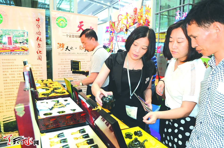 天水市委、市政府对此次文博会参展工作高度重视,市委宣传部与省上积极衔接,制订参会方案,以“文化与旅游深度融合发展”为核心,以“推介天水文化资源、凸显天水文化特色、拓宽合作发展空间”为主题,围绕我市“源、根、秦、城、路、窟、泉、秀”八大主题设计推介优势资源,从市情介绍、华夏文明传承创新区建设、文化与旅游深度融合发展、重大文化项目等方面精心设计制作了宣传品,重点展示和推介我市文化旅游特色资源和文化商品。并汇总整理了我市招商引资项目76个,涉及投资金额达573.79亿元。