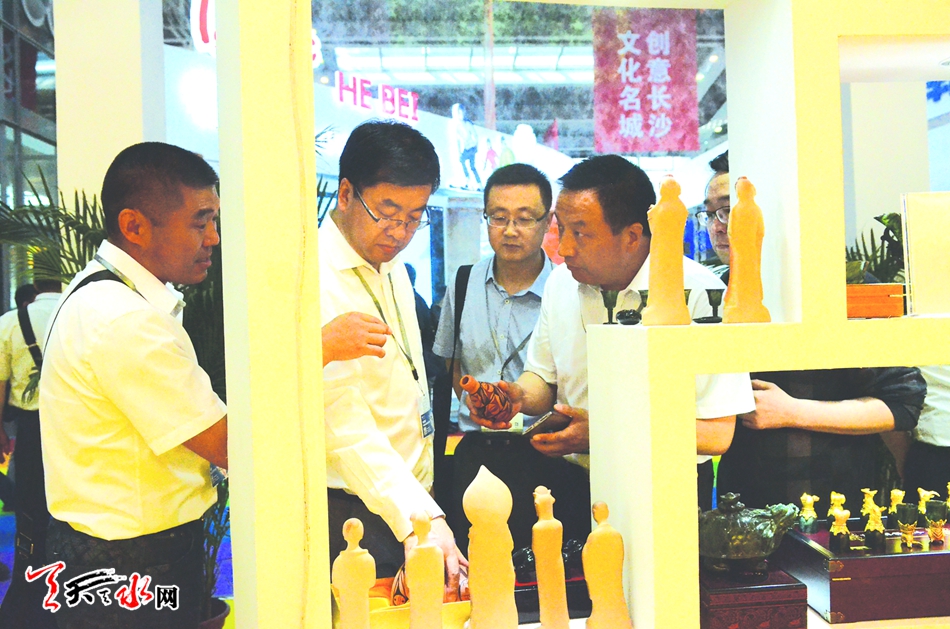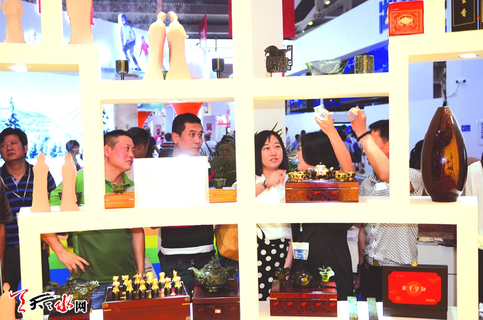 走进文博会甘肃展馆,天水展台展出的鸳鸯玉、雕漆及陶文化产品吸引了众多参展商和观众的目光。鸳鸯玉独具特色的粗狂纹理,带着西北风沙的苍凉在观众眼中别具一格;“东方微笑”小沙弥,其温文尔雅、富有禅意的表情展示着麦积山石窟文化一隅;运用传统拶金技艺制成的黄河雕漆产品工艺精湛,美轮美奂。天水丰富的文化旅游特色产品,闪耀着传统文化与现代工艺相结合的智慧之光,让海内外观众更加直观、全面地体会到我市工艺品的独特魅力。“没想到,甘肃天水文化底蕴这么深厚,玉器、雕漆产品这么精致,有创意,小沙弥惟妙惟肖,亲近可爱。”前来参观的嘉宾和观众情不自禁地发出这样的赞叹。