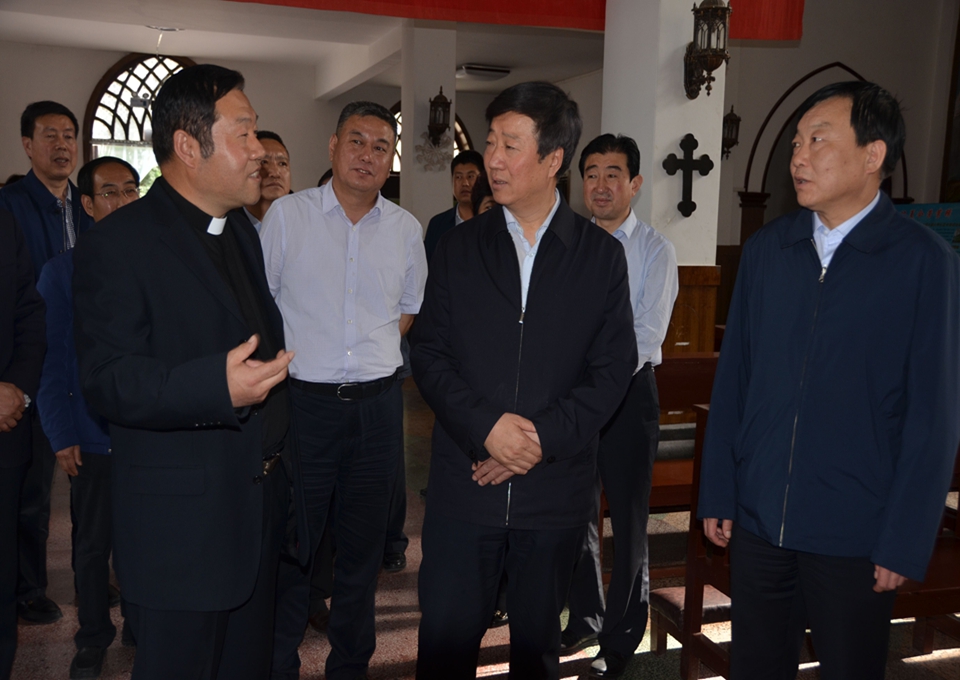 在秦州区东关天主堂等宗教场所调研时,王玺玉强调,要认真学习全国宗教工作会议精神,深入贯彻党的宗教方针政策,坚持我国宗教中国化方向,完善管理措施,引导宗教界人士和广大信教群众为全省脱贫攻坚和小康社会建设作出新贡献。