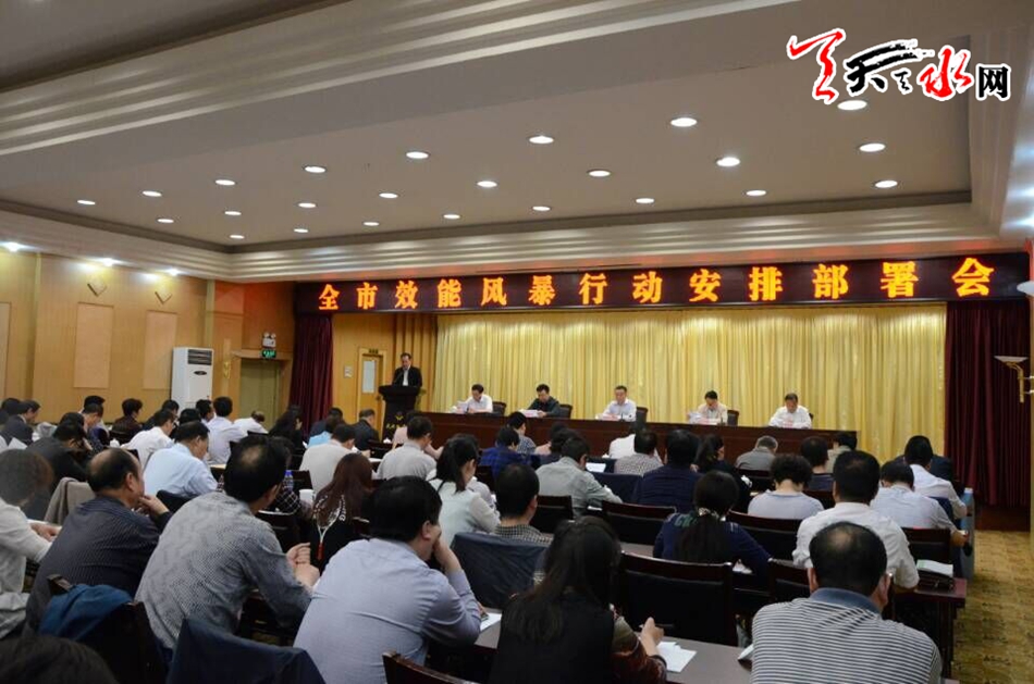 天天天水网24日17时讯 【记者何永德 王晓馨 实习生吴丽娜】5月24日,天水市效能风暴行动安排部署会召开。会议贯彻落实全省效能风暴行动视频会议精神,总结2015年工作,交流经验,部署今年工作任务。