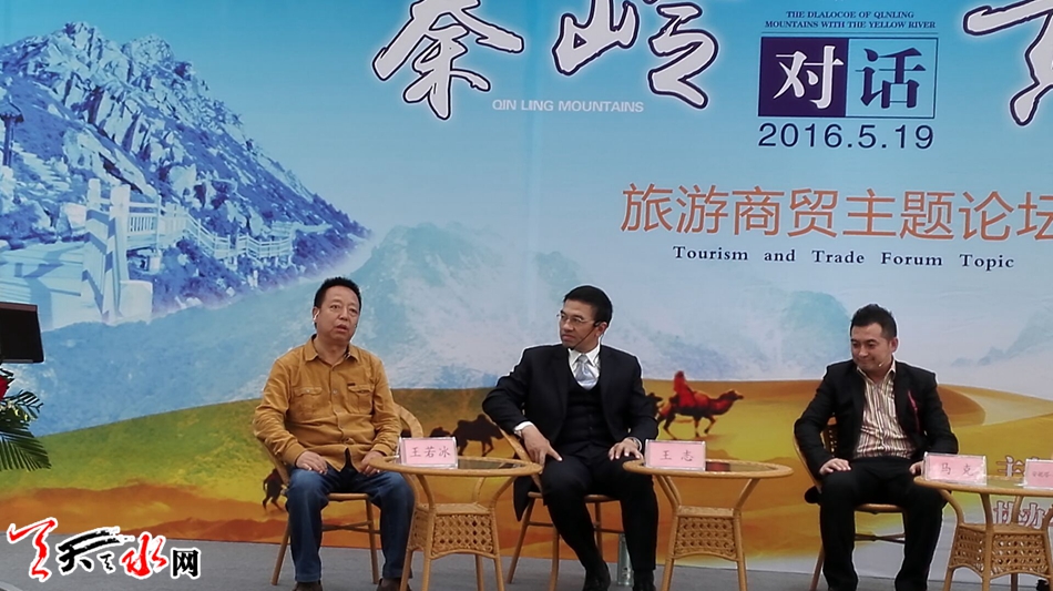 天水日报社副总编辑、天水晚报执行总编王若冰应邀参加此次活动,并在当日下午举行的秦岭与黄河对话旅游商贸主题论坛上,与著名文化学者、中国传媒大学研究员、硕士生导师王志,陕西省行政学院教授、金融专家白山稳,驴妈妈旅游网母公司景域集团助理总裁任国才,华谊启明东方活动营销产业集群董事总裁、华谊兄弟星剧场董事总裁马克,哈萨克斯坦工商联合会驻陕西办事处代表安妮塔朱密克诺娃等国内外知名文化、经贸、旅游专家学者一起就古丝绸之路上的文化遗产和价值,丝绸之路对现代商贸的影响,丝路沿线的商业机会等话题进行了探讨。