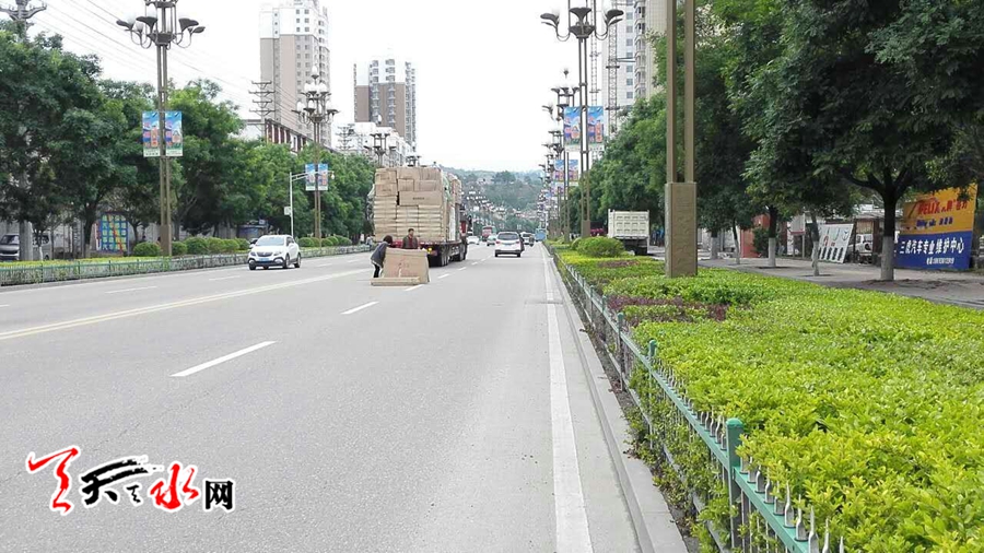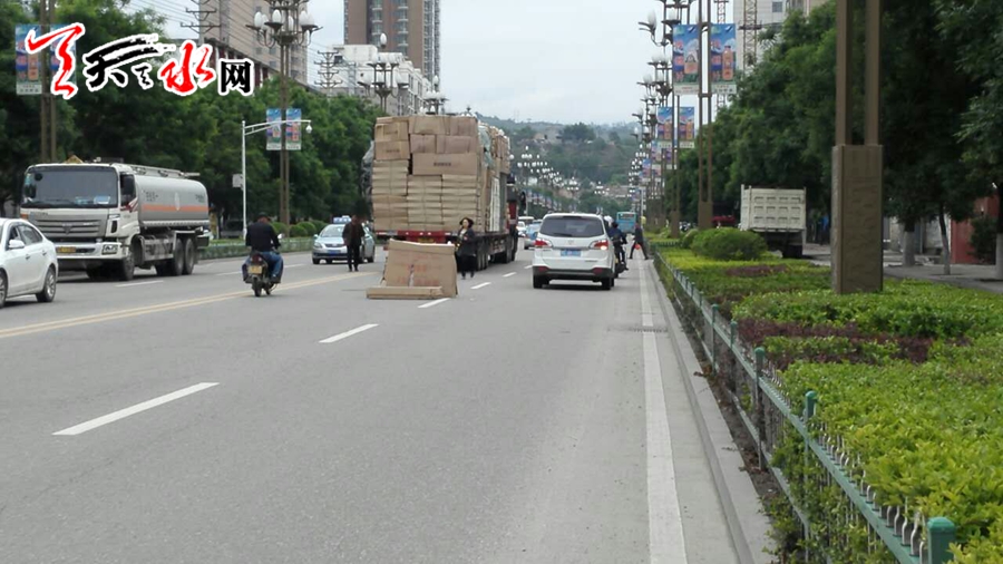 天天天水网26日19时讯【记者蔚军平】5月26日16时许,吉林省一辆载有家具等货物的平板货车行经秦州区羲皇大道长控医院附近时,车上的几件货物突然掉落在路面上。货车司机发现货物掉落后急忙停车,一男一女随即下车查看情况,最终两人将货物搬至平板车的中间位置。此次意外所幸没有殃及到后面行驶的车辆。
