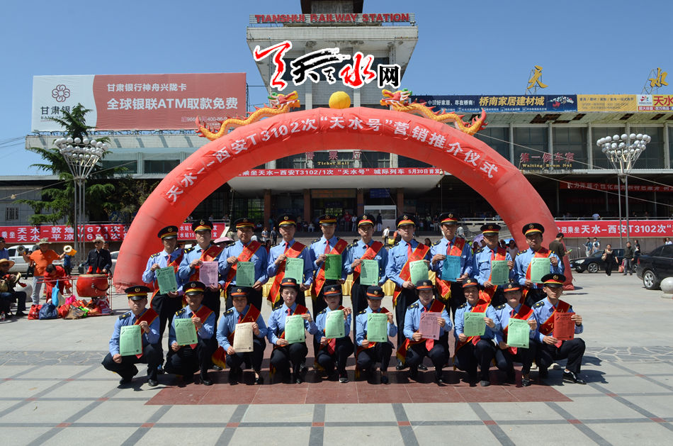天天天水网5月29日16时快讯(记者杨璟)天水—西安T3102次“天水号”城际列车将于5月30日上午7时在天水火车站首发。29下午,市文化和旅游局、天水火车站联合在火车站广场举行“天水号”列车营销推介活动,诚邀广大游客和市民乘坐天水—西安T3102次“天水号”城际列车。