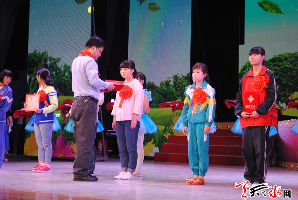 市委常委、宣传部长王正茂观看汇报展演并为第四届“天水美德少年”颁奖。