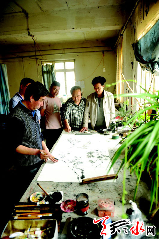 温玉中说,天水市牡丹书画院的前身是天水市麦积牡丹书画院,坚持以城市为基点,以乡镇为重点,辐射农村,服务基层。最初主要吸收的是城镇离退休人员,后来加入了农民书画爱好者。看到农民书画创作者不断增多,他们便顺应发展势头,吸纳农民书画创作者,并在农村设立了好多分院。目前,设立的10个分院中,除了秦州、麦积、秦安分院外,其余分院都在乡村。其中秦州区天水镇分院、汪川分院,麦积区三阳川分院、社棠分院、甘泉分院、东岔分院等都已形成了一定的规模,不仅经常定期为辖区群众赠送书画作品,还对培育群众的书画爱好起到了非常积极的作用。