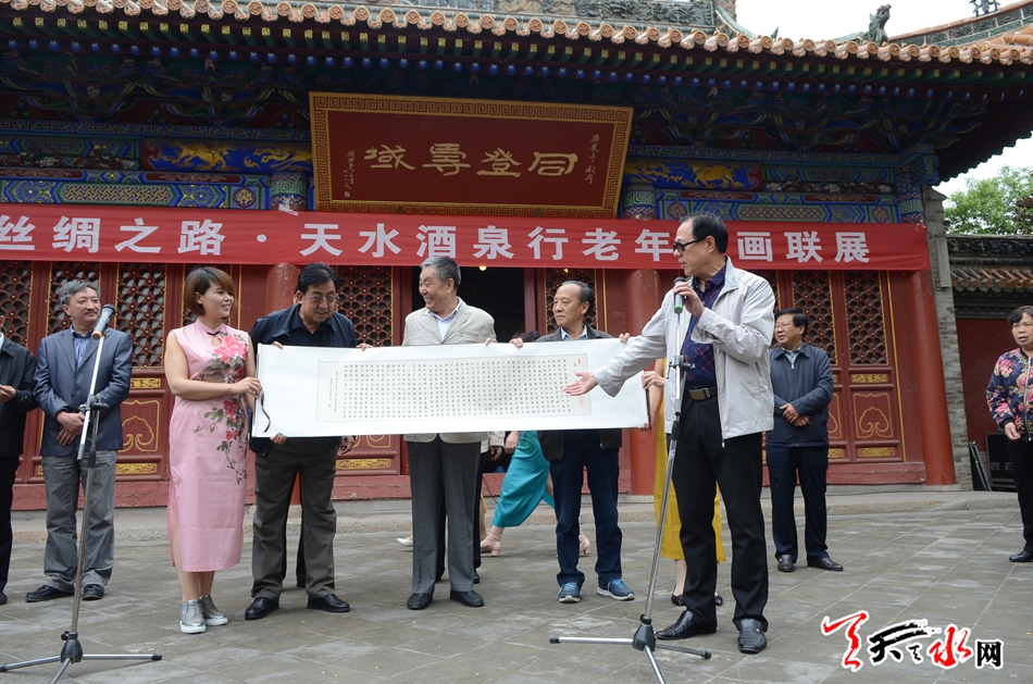 天天天水网3日10时讯 【记者 杨璟】6月3日上午,由市老龄委主办,市老年书画研究会、酒泉市老年书画家协会、市美术馆承办的丝绸之路•天水酒泉行老年书画联展在市书画院开展。