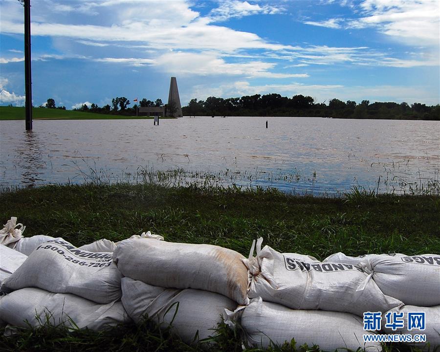 6月3日,在美国得克萨斯州休斯敦西南的舒格兰市,毗邻布拉索斯河下游的舒格兰市纪念公园受到洪水侵袭。