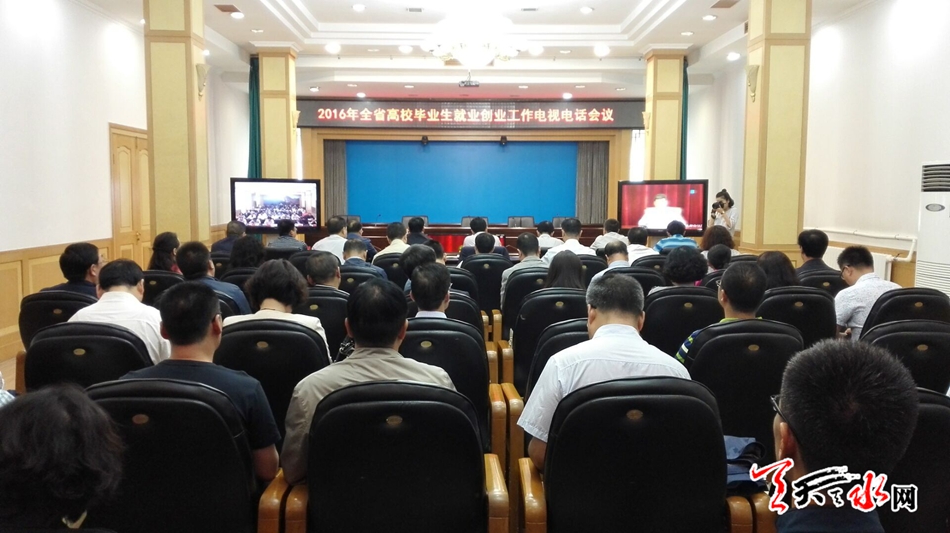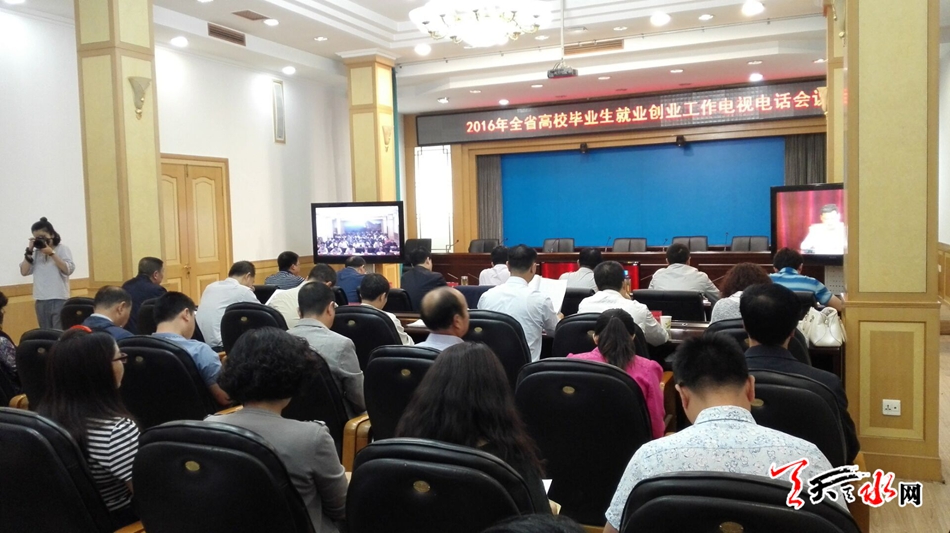 天天天水网6日10时讯【记者李旺旺】6月6日,2016年全省普通高校毕业生就业创业工作电视电话会议召开,天水市委常委、副市长张明泰及我市相关部门负责人在天水分会场收听收看。