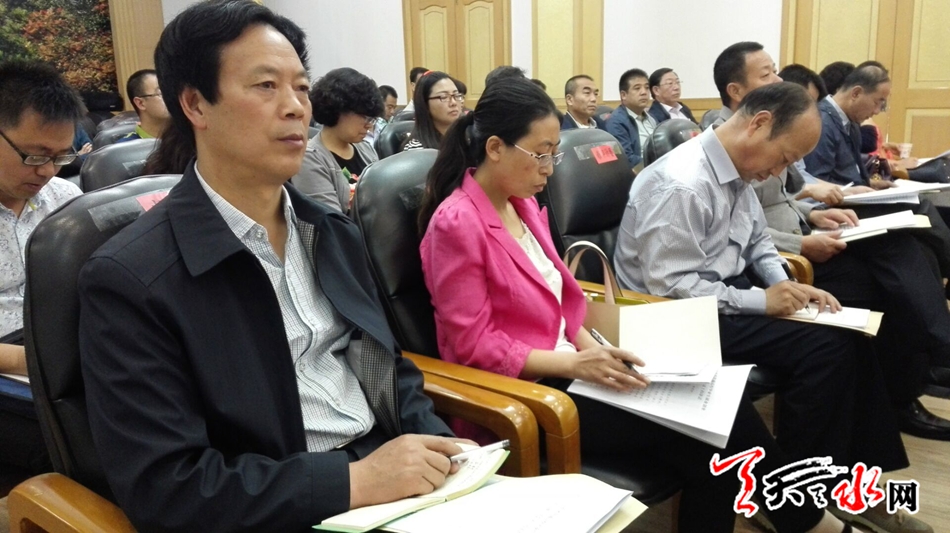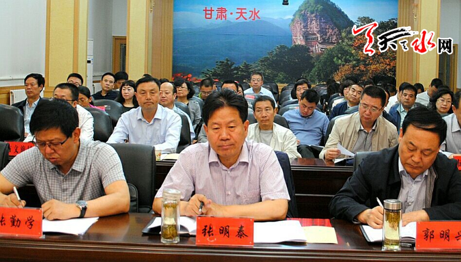 (张明泰及天水市相关部门负责人在天水分会场收听收看)