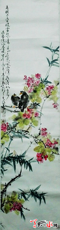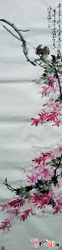 擅长写意花鸟,作品构图洗练,用笔苍劲、雄健,以传统为基础,追求新的意境韵味,画风写实中见新奇,画面清新感人,生机盎然。