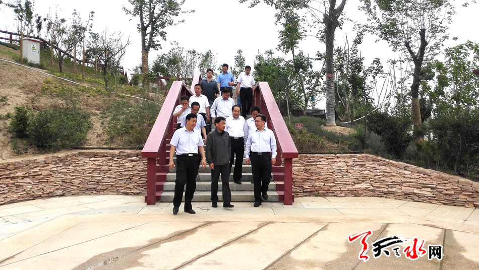 ▲甘肃省政协调研组调研麦积区马跑泉公园
