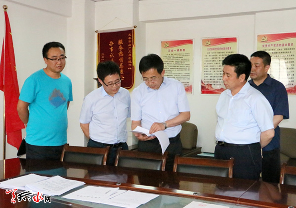 天天天水网讯【记者姬旺芳】6月7日,天水市委常委、组织部长王光庆深入市房地产产权交易中心和市公积金管理中心,通过实地察看、座谈交流、查阅资料等方式,就“两学一做”学习教育、干部队伍建设、档案信息化建设等工作进行调研。他强调,要结合单位职能特点和工作实际,从严从实抓好“两学一做”学习教育,切实加强党员干部教育管理,打造坚强有力的领导班子和高素质干部队伍,不断提升房地产交易管理和公积金管理工作水平,为广大干部群众提供更加优质的服务。