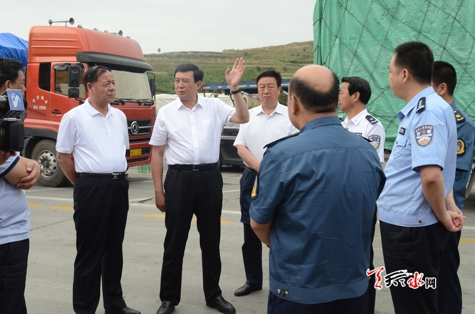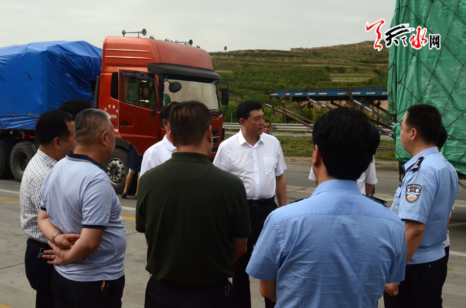 天天天水网14日14时讯 【记者 胡丽霞】6月14日,市委常委、政法委书记赵卫东赴连霍高速秦州隧道维修工程现场,就施工现场环境管理、道路通畅等问题进行现场协调办公。