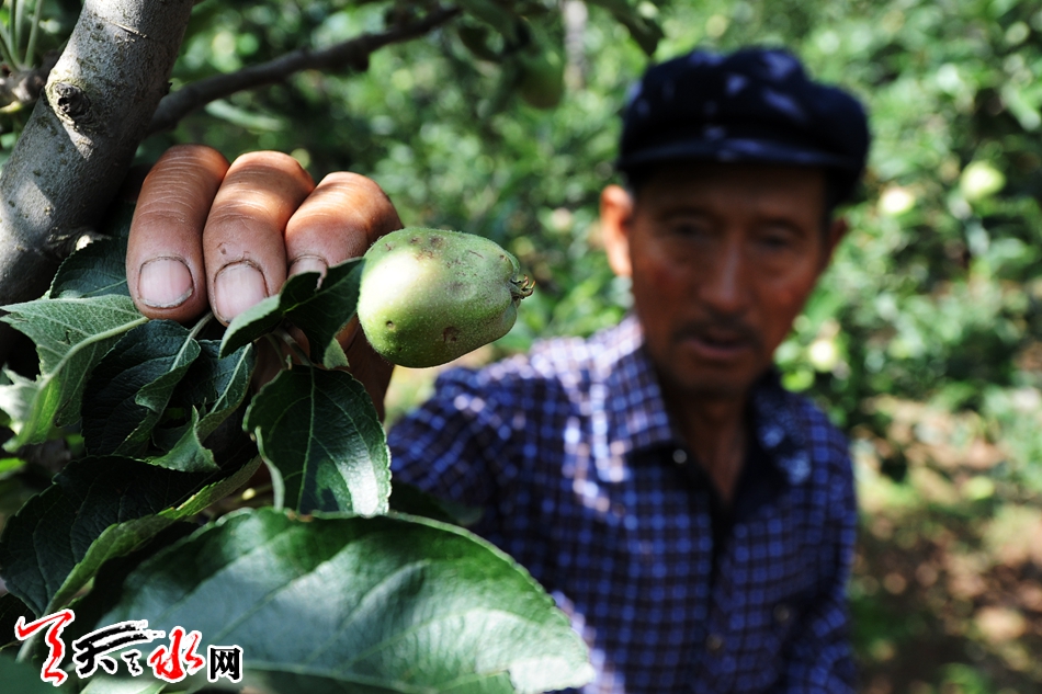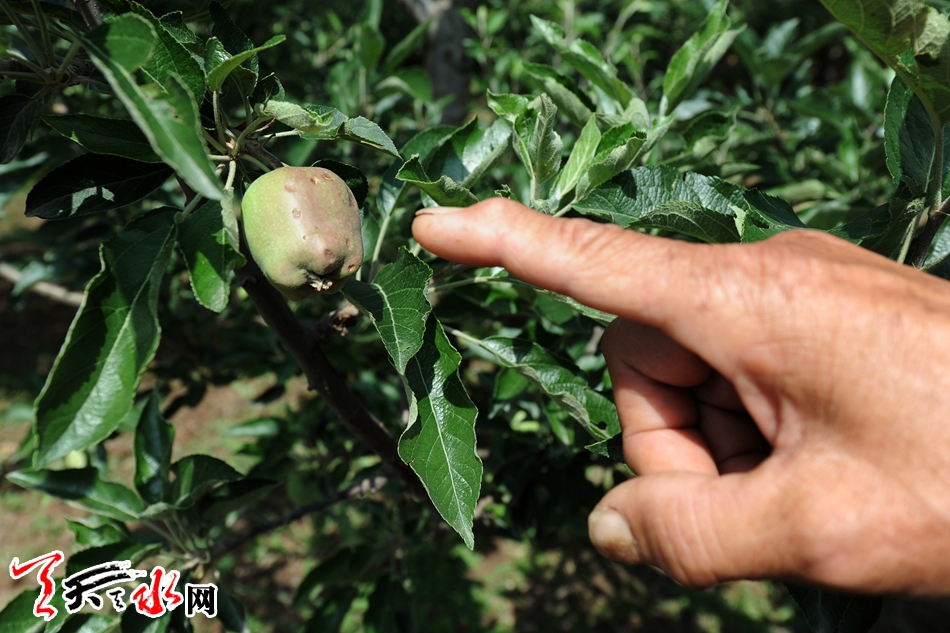 “果子遭到冰雹打击后,表面都变成麻子窝窝了,长大谁还要啊!”何湾村村民何田生发愁地告诉记者,他种了10亩苹果树,大部分是红星苹果,少部分是富士苹果,由于红星苹果没有套袋,受灾严重。果农汪亚军告诉记者,他种了18亩果树,这次冰雹使他损失严重,现在树上有疤的果子成熟后只能交给果汁厂,价格也是几毛钱一斤。