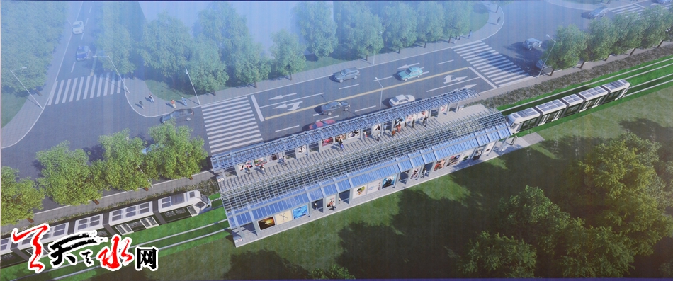 有轨电车示范线是贯通市区东西向的公共交通骨干线路,连通秦州区、成纪新城及麦积区。线路起于秦州区友好路东侧,依次经成纪大道西路、罗玉路、岷山路、续建成纪大道东路向东,终于天水火车站。全线设站17座,初期实施10座地面站。(天水日报记者 周文涛 孙 镇 摄)